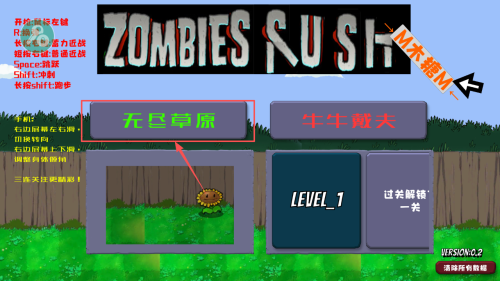 1、选择模式:在游戏主界面点击“无尽草原”或“关卡1”选择游戏模式。