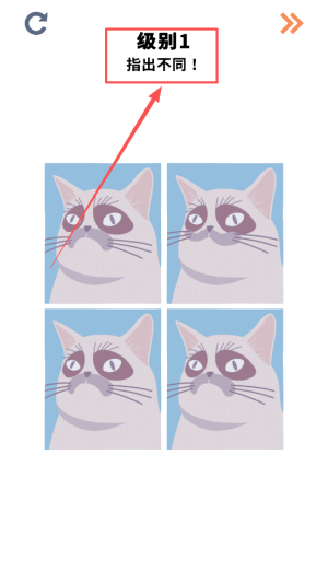 2、进入挑战:在级别1指出不同!界面点击开始。