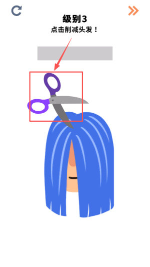 4、继续挑战:在级别3点击削减头发!界面点击继续。
