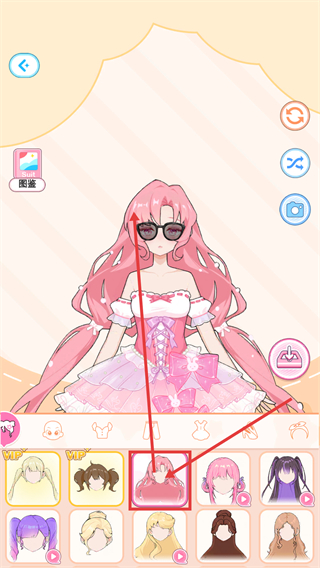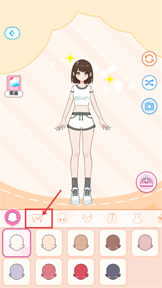 2、进入装扮界面后,点击左侧发型类图标打开选择栏,可挑选不同发色发型装扮角色,同时能借助【图鉴】查看套装。