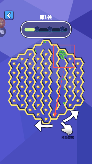 4、开始闯关:在第1关拖动旋转界面旋转迷宫让球球逃脱。