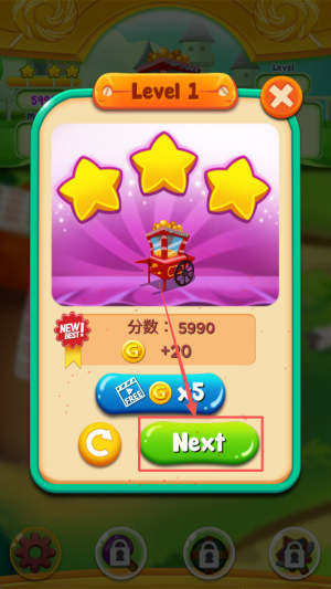 4、完成关卡:在Level1分数5990界面点击Next进入下一关。