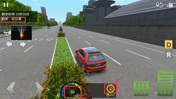 2、进入驾驶界面后,按【请前往载客区】的提示操控车辆,留意剩余02时39分的时间与40公里的行程距离。