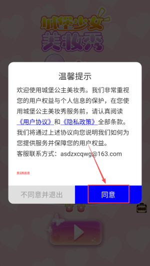 1、阅读协议:在堡女美妆秀温馨提示界面点击同意。