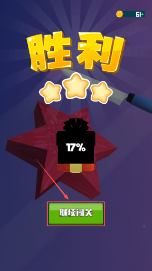 4、完成通关:在61胜利17%界面点击继续间关进入下一关。