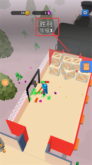 3、战斗中优先瞄准聚集的绿色敌人集群射击,借助范围攻击效果提升清敌效率,推进等级进度(2→3阶段)。