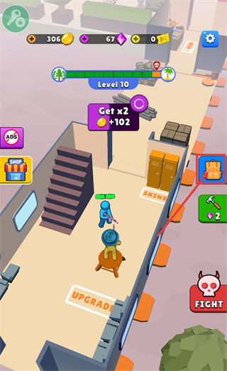 1、处于【Level-10】时,触发【Get-x2】可获+102奖励,留意界面里的【UPGRADE】标识,及时升级助力推进游戏进程。