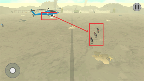 2、在【Level-2】的战场中,操控【HMG-10-LVL-1】直升机,利用其武器系统攻击敌方小队,集中火力消灭目标推进战局。