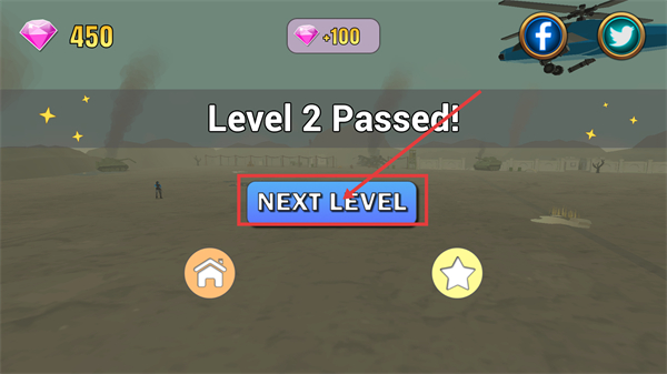 4、达成【Level-2-Passed】后,点击【NEXT-LEVEL】进入下一关,同时可获取钻石奖励,持续解锁后续关卡内容。