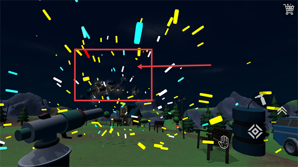 4、观看蓝色炸药堆燃放的特效,完成该道具的展示环节,可继续处理场景内的其他同类道具推进流程。