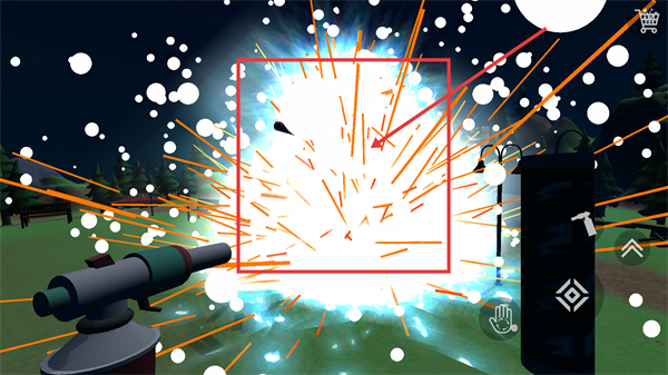 4、观看红色炸药堆燃放的爆炸特效,完成该道具的展示环节,可继续处理场景内的其他同类道具。