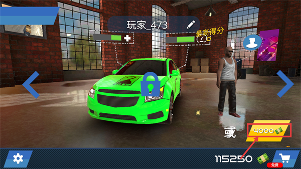 1、进入对应界面后,留意【玩家_473】标识,关注赢得得分-23,绿色锁定车辆可消耗4000货币解锁,同时注意底部显示的15250-数值。