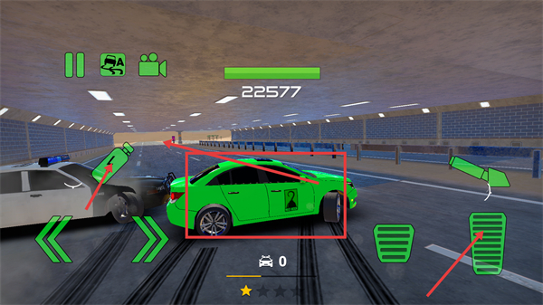 2、处于驾驶场景时,界面显示22577-数值,通过左右箭头操控车辆,拾取绿色能量瓶补充状态,同时留意车辆的受损提示标识。