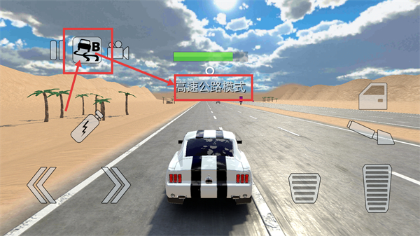 3、进入【高速公路模式】后,用带【B】标识的按钮与方向键操控车辆,拾取场景内的能量瓶,保障行驶的持续状态。