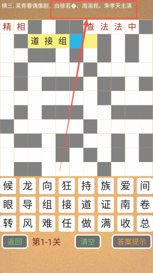 2、阅读题目:在第1-1关界面查看横一纵一提示。