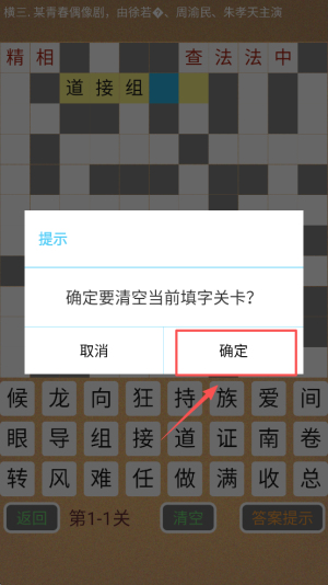4、清空重填:在提示确定要清空当前填字关卡?界面点击确定重新填写。
