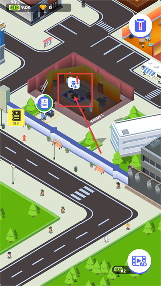 2、在场景中找到带提示标识的【布景区域】,可借助左侧的【提示】功能,快速定位到需要操作的升级区域。