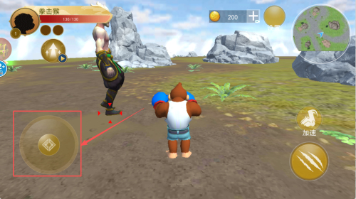 1、操控小猴子在初始区域活动,寻找并击败弱小生物,吞噬后获取营养,积累到一定量即可触发升级进化。