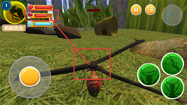2、共生生物互动,狩猎时可收服“蚜虫”(持续产蜜)、“螨虫”(清除巢穴寄生虫)等共生伙伴,不同伙伴带来专属生存buff。