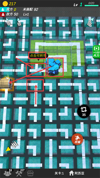 3、闯关与攻城双重核心,低阶关卡侧重格子解谜(打通通道收集资源),高阶关卡聚焦攻城实操(破城门、占堡垒),节奏层层递进。