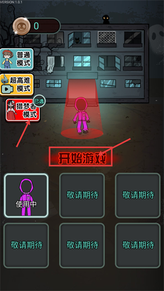 1、选定【猎梦者模式】,确认【使用中】的紫色角色,点击【开始游戏】按钮,即可进入该模式的对局开启挑战。