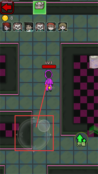 2、以【LV.1】的猎梦者身份行动,当前持有【8-金币】,通过移动可获取【+1-金币】,同时留意界面的升级功能。