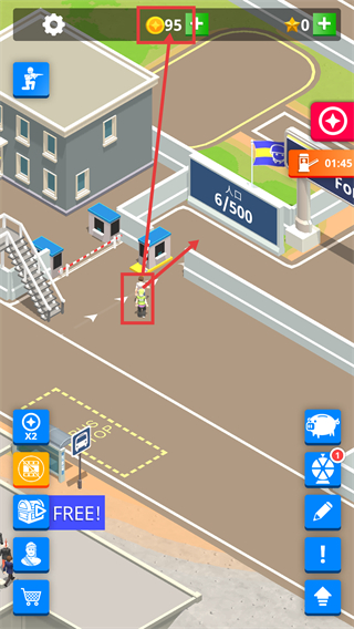 4、新兵完成接引进入场地后,【人口-6/500】【金币-95】同步变化,需维护设施来持续提升人口引入的效率。