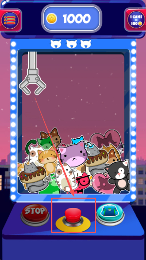 3、开始抓猫:点击“START”按钮启动机器,瞄准目标后点击“STOP”按钮放下爪子抓取猫咪。