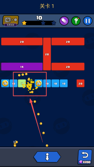 1、开启闯关准备:熟悉简单的点击操控逻辑,明确“击打消除砖块、顺利通关”的核心目标,了解关卡基础规则。