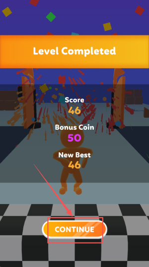 3、领取奖励:在结算界面查看“Bonus Coin 50”与“New Best 46”,点击“CONTINUE”领取奖励。