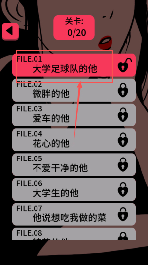 2、选择关卡:在关卡列表界面,浏览“FILE.01”至“FILE.08”等20个关卡,选择想要体验的剧情。