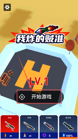 1、进入游戏:可以看到“我炸的贼准”标题,点击“开始游戏”进入武器选择界面。