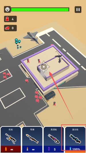 3、进行游戏:在关卡界面瞄准目标,使用已选武器完成射击任务。