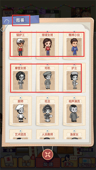 4、进入图鉴界面,可查看已解锁的顾客职业类型,通过持续互动不同类型的顾客,能解锁更多图鉴内容,丰富店铺的顾客类型池。