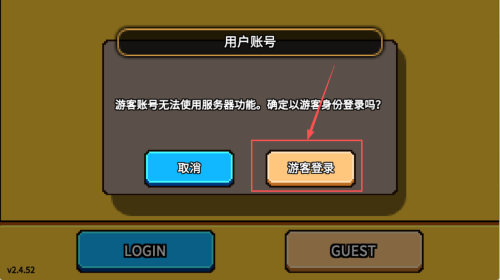 2、确认登录:如果选择游客登录,点击“游客登录”按钮确认。