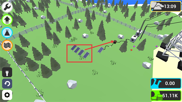 3、场地规划兼具策略性与灵活性,砍伐树木、拓展土地后,可借助中文布局辅助提示,优化电塔间距与发电设施摆放,最大化利用空间资源。