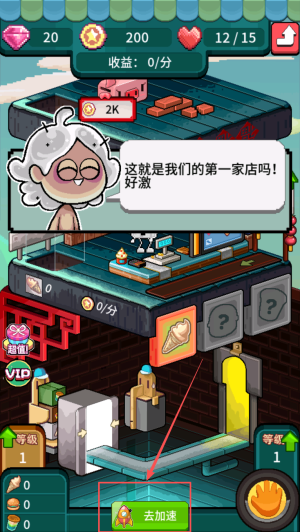 4、开始经营:进入游戏后,点击“去加速”按钮,开始你的第一家店铺的经营。