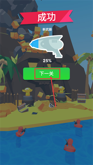 4、通关后获得【新武器-25%】的进度奖励,点击【下一关】按钮即可开启后续关卡挑战。