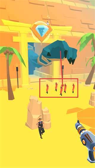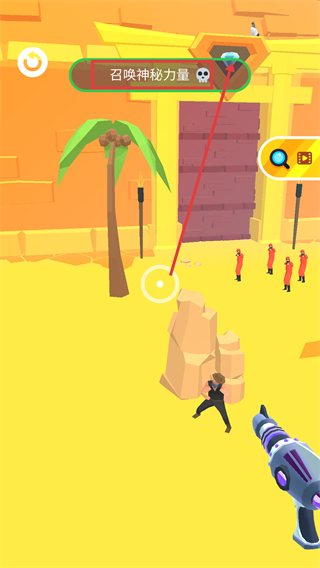 3、宝石放大后成功召唤出神秘生物,该生物会自动清除场景中的红色敌人,完成关卡的战斗目标。