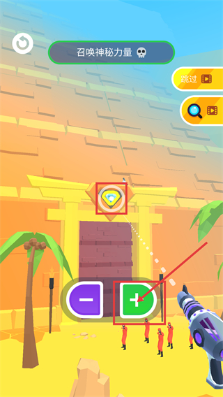 2、点击界面中的【+】按钮,对上方的宝石执行放大操作,完成该交互以触发神秘力量的召唤前置步骤。