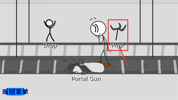 2、在场景中交互红色框标注的【Wire(电线)】道具,借助它关联下方的【PortalGun】,为后续空间传送操作铺垫条件。