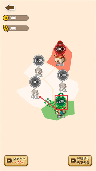 2、对局中先操控3200兵力攻占中立据点,逐步积累兵力,同时留意吴国8000兵力的据点,避免前期直接冲突。