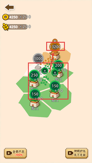2、对局初始操控300+50兵力的据点,先攻占周边100兵力的中立据点,积累兵力同时获取资源+100的收益。