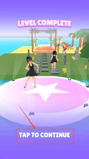 4、完成关卡:当界面显示“LEVEL COMPLETE”时,点击“TAP TO CONTINUE”领取奖励并进入下一关。