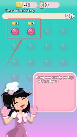 4、合成糖果:在合成界面中,按住Drag one candy onto another提示,拖动两颗相同糖果完成合并。