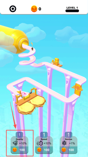 2、进入关卡:在主界面中,点击“LEVEL 1”进入第一关,查看+10%与88的初始加成数值。