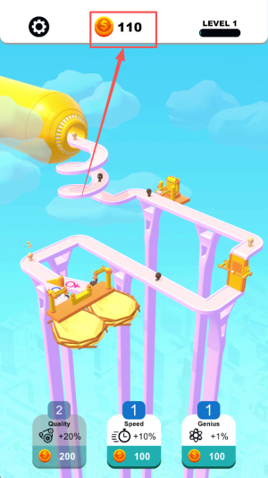 4、达成进阶:当界面显示110与+20%时,确认LEVEL 1完成,准备进入下一关挑战。