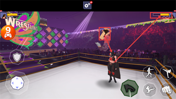 2、比赛场景简约却不失氛围,聚焦核心摔跤对抗,无冗余元素干扰,让玩家专注享受对战的欢乐与刺激。