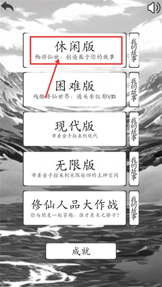 1、选择【休闲版】模式开启游戏,该模式主打轻松修仙体验,适合新手快速熟悉剧情与玩法。
