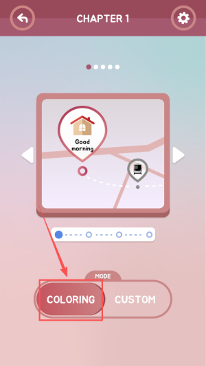 2、选择章节:在章节界面中,点击CHAPTER1,选择COLORING模式进入自定义涂色。